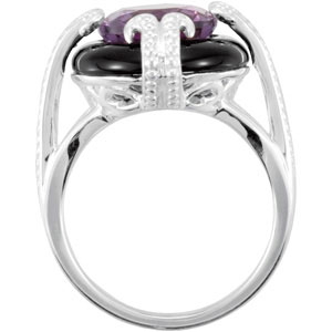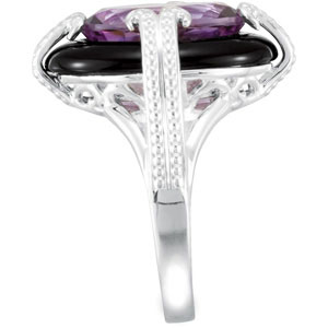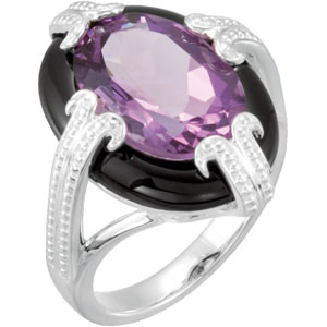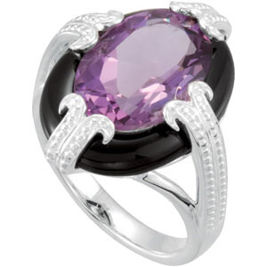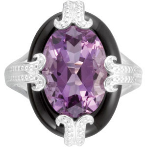 Set with:1ea 3.400 Ct -- 20x15 MM, N/A Gemstone Onyx Fancy Cabchon1ea 5.400 Ct -- 14x10 MM, N/A Oval Gemstone Amethyst Oval Cut