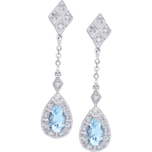 Genuine Aqua and Diamond Earrings 6 x 4mm .17 CTW Ref 450983