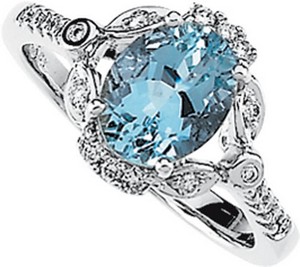 Genuine Aquamarine & Diamond Ring | 9 x 7 mm | 1/6 Carat TW