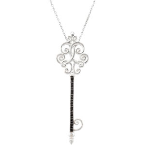 Genuine Black Spinel Scroll Key 18 inch Necklace Ref 911165