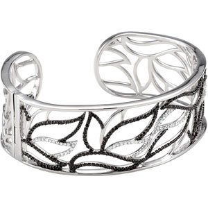 Genuine Black Spinel & Diamond Hinged Cuff Bracelet. Sterling Silver. 1/2 Carat TW.