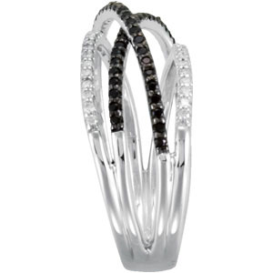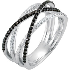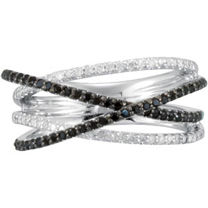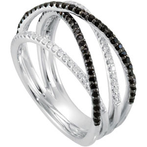 Genuine Black Spinel & Diamond Ring. Sterling Silver. 1/4 Carat TW.