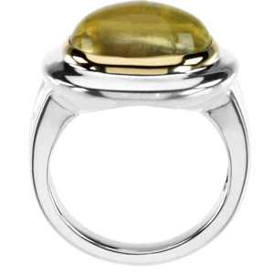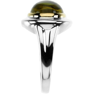 Genuine Cabochon Lime Quartz Ring | 14 x 10 mm. Sterling Silver & 14K Yellow Gold. Also available set with Rose Quartz: SKU 67180. Ref. Mtg. 71493.