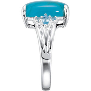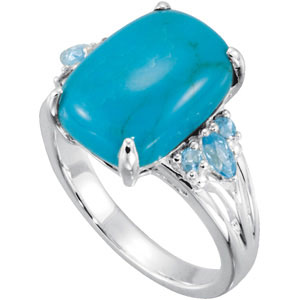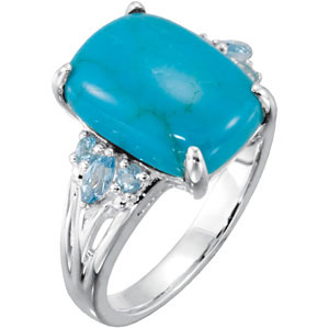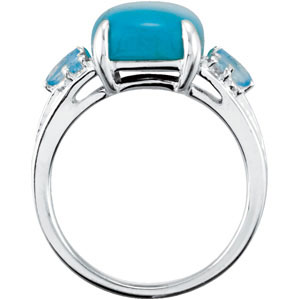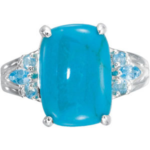 Genuine Chinese Turquoise & Swiss Topaz Ring. Sterling Silver. 14 x 10 mm.