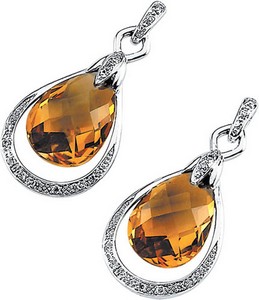 Genuine Citrine Briolette & Diamond Earrings | 1/8 Carat TW; Matching Pendant: 66136.