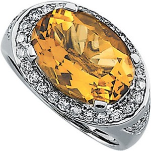 Set with:1ea 5.400 Ct -- 14X10 MM, Oval Gemstone CITRINE BRILLIANT FACETTING4ea 0.019 Ct , GH I1 Round Diamond FULL CUT6ea 0.013 Ct , I1 G-H Round Diamond FULL CUT28ea 0.015 Ct , GH I1 Round Diamond FULL CUT