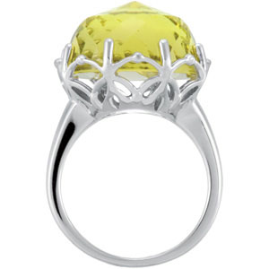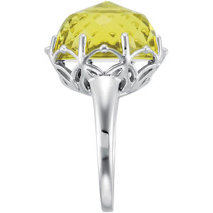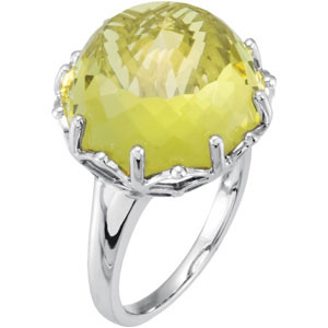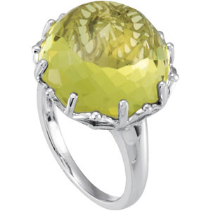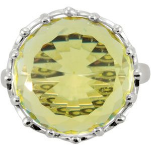 Genuine Green Gold Quartz Ring. Sterling Silver. Set with 1ea 17.100 Ct -- 16x16 MM, Round Gemstone Green Gold Quartz Fancy Round.