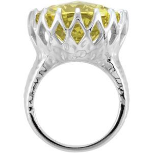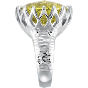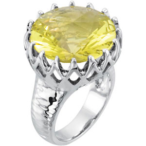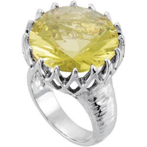 Genuine Green Gold Quartz Ring. Sterling Silver. Set with 1ea 16.310 Ct -- 18x18 MM, Round Gemstone Green Gold Quartz Fancy Round.