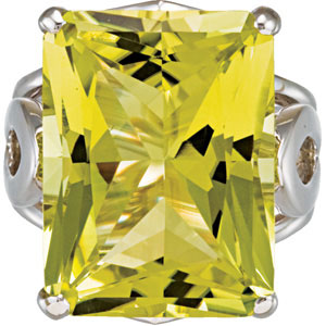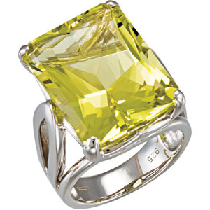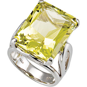 Genuine Green Gold Quartz Ring. Sterling Silver. Set with 1ea 20.200 Ct -- 20x15 MM, Gemstone GREEN GOLD QUARTZ.