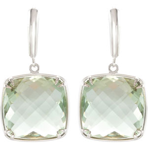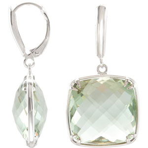 Genuine Green Quartz Earrings. Sterling Silver. Set with 2ea 16.00x16.00 MM A Double Sided Checkerboard, Genuine Quartz - Antique Square Double Sided Checkerboard; A Quality; Green. Ref. 85016.