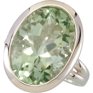 Genuine Green Quartz Ring. Sterling Silver. Set with 1ea 12.300 Ct -- 18x13 MM, Oval Gemstone Green Amethyst.