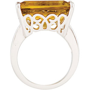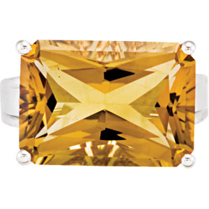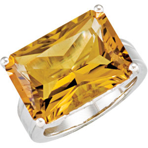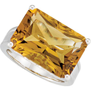 Genuine Honey Quartz Ring. Sterling Silver. Set with 1ea 14.200 Ct -- 18x13 MM, Gemstone Honey Citrine Radiant Octagon.