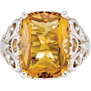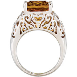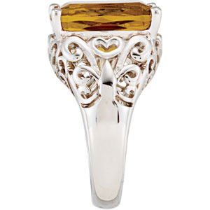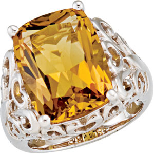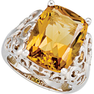 Genuine Honey Quartz Ring. Sterling Silver. Set with 1ea 10.610 Ct -- 16x12 MM, Cushion Gemstone HONEY CITRINE.