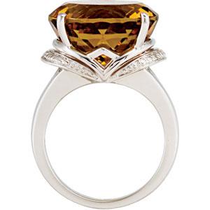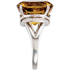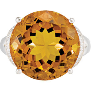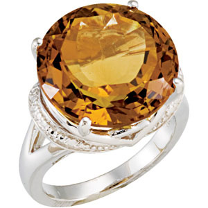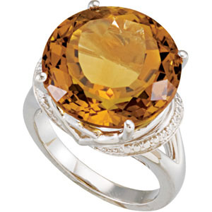 Genuine Honey Quartz Ring. Sterling Silver. Set with 1ea 16.030 Ct -- 16x16 MM, Round Gemstone HONEY CITRINE.