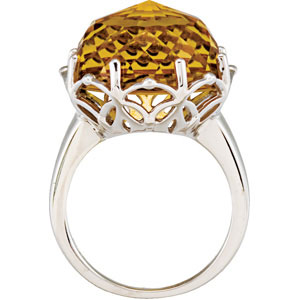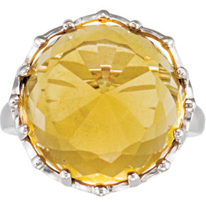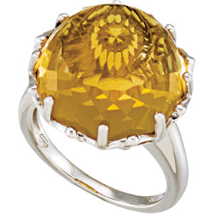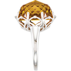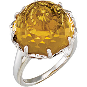 Genuine Honey Quartz Ring. Sterling Silver. Set with 1ea 17.100 Ct -- 16x16 MM, Round Gemstone Honey Citrine Fancy Round.
