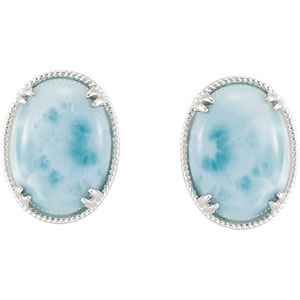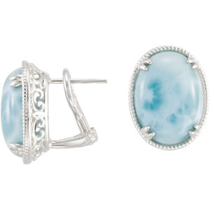 Genuine Larimar Earrings. Sterling Silver. 16 x 12 mm. Matching Ring: 68298. Matching Pendant: 68300. Set with 2ea 16X12 MM, N/A Oval Cabochon Gemstone Larimar Oval Cabochon.