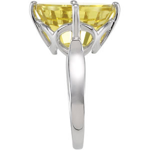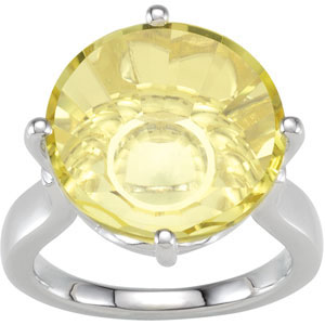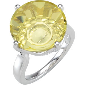 Genuine Lime Quartz Ring. Sterling Silver. Set with 1ea 13.460 Ct -- 16X16 MM, Round Gemstone LIMA QUARTZ FANCY.