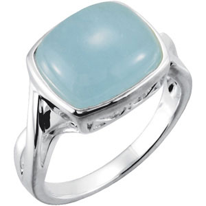 Genuine Milky Aquamarine Ring. Sterling Silver. Size 7. 12 x 10 mm.