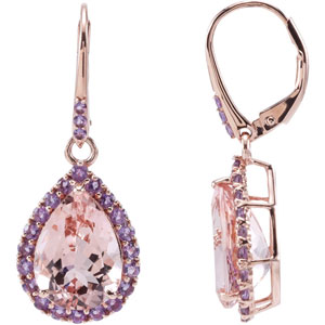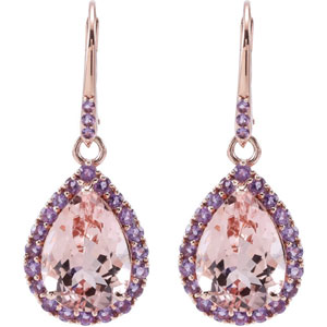 Genuine Morganite & Amethyst Earrings. 14K Rose Gold. Matching Pendant: 68560.