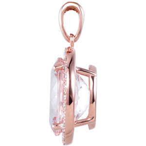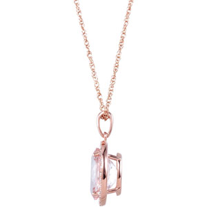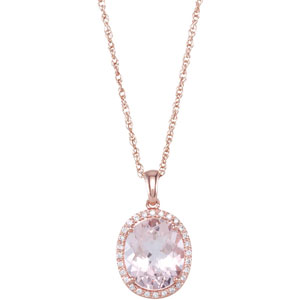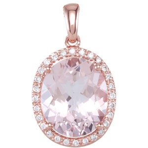 Genuine Morganite & Diamond Pendant. 14K Rose Gold. 1/10 Carat TW.