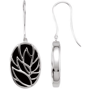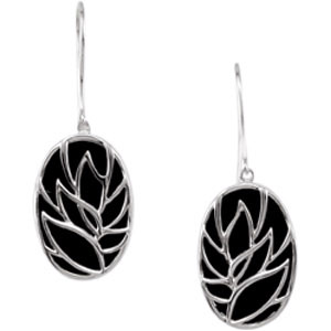 Genuine Onyx Earrings. Sterling Silver. Set with 2ea 4.410 Ct -- 18X12 MM, Gemstone Onyx Cabochon Oval.