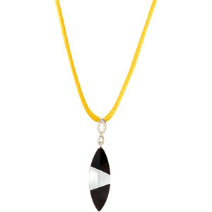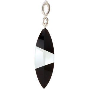 Genuine Onyx & Clear Quartz 16.5" Necklace. Sterling Silver. Set with 1ea 19.900 Ct -- 36x12 MM, Gemstone ONYX CLEAR QUARTZ FANCY MARQUISE (PUZZLE).