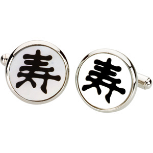 Genuine Onyx & Mother of Pearl Cuff Links | 16 mm. Symbol is for "longevity". Sterling Silver.
