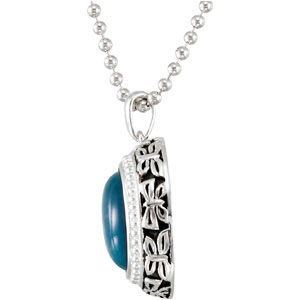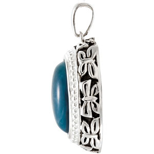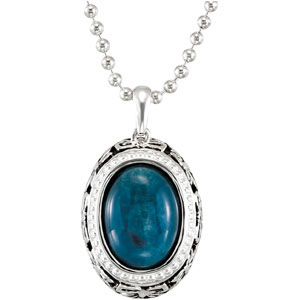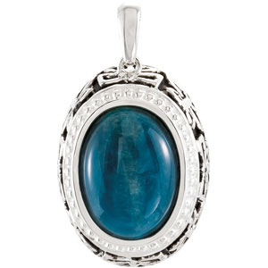 Genuine Opaque Apatite Pendant. Sterling Silver. Matching Ring: 68039. Matching Earrings: 68303. Shown with 18-inch chain CH437 which is sold separately. Set with 1ea 7.450 Ct -- 15X11 MM, N/A Oval Cabochon Gemstone Opaque Apatite Oval Cabochon.