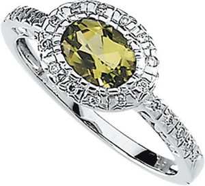 Genuine Peridot & Diamond Ring | 7 x 5 mm | 1/10 Carat TW. Matching Necklace: 63564.