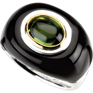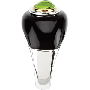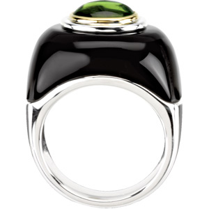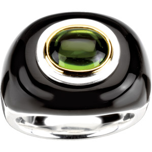 Set with:1ea 18.250 Ct -- 15.5x22 MM, Gemstone Onyx Fancy Cab1ea 2.050 Ct -- 9x7 MM, Oval Gemstone Peridot Cab
