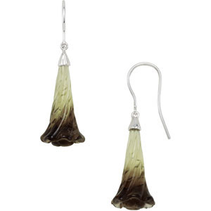 Genuine Phantom Quartz Earrings. Sterling Silver. Set with 2ea 5.570 Ct -- 20x10 MM, N/A Gemstone Phantom Quartz Fancy Carving.