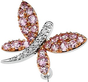 Genuine Pink Sapphire & Diamond Dragonfly Brooch | .06 Carat TW; Matching Necklace: 65686; Matching Earrings: 65684.