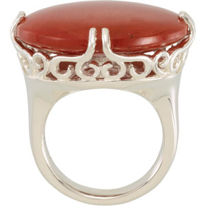Genuine Red Jasper Ring. Sterling Silver. Set with 1ea 33.710 Ct -- 25x25 MM, Round Cabochon Gemstone Red Jasper.