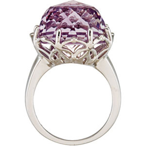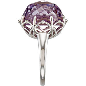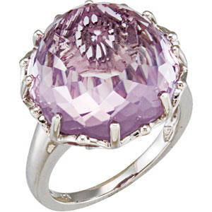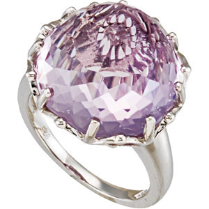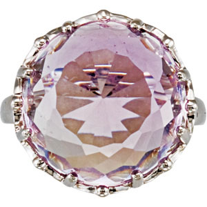 Genuine Rose De France Quartz Ring. Sterling Silver. Set with 1ea 17.100 Ct -- 16x16 MM, Round Gemstone Rose De France Fancy Round.
