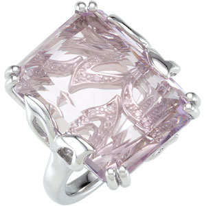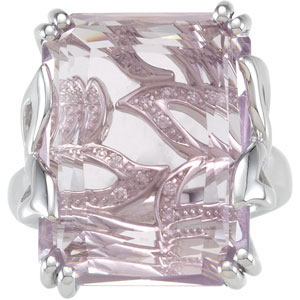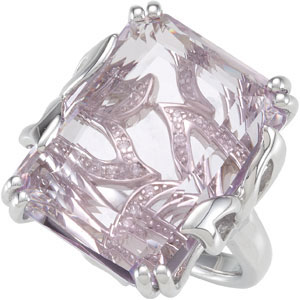 Set with:1ea 21.980 Ct -- 20X15 MM, Gemstone ROSE DE FRANCE OCTAGON5ea 0.005 Ct -- 1.1 MM, GH Round Diamond11ea 0.004 Ct -- .90 MM, GH Round Diamond