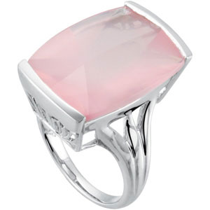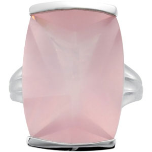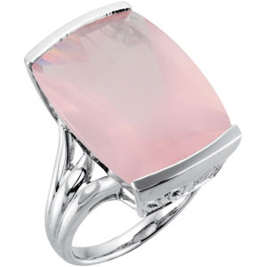 Genuine Rose Quartz Ring. Sterling Silver. Set with 1ea 17.560 Ct -- 20x15 MM, Cushion Gemstone Pink Quartz Fancy Cushion.