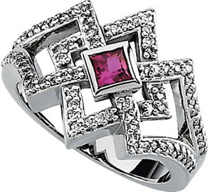 Set with:1ea Genuine Ruby - Square 03.50 MM AA Princess76ea Genuine Diamond G-H Round SI1 01.00 MM (01.00 - 01.15) Full Cut.