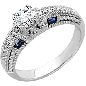 Genuine Sapphire and 1/8 Carat TW Diamond Semi-Set Engagement Ring. 1/2 Carat diamond center sold separately.