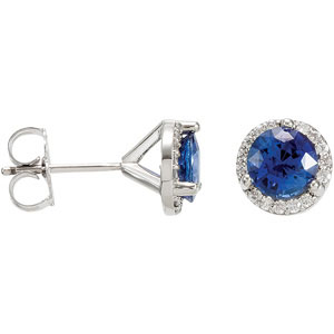 Genuine Sapphire & Diamond Earrings. 1/6 Carat TW.