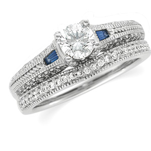 Genuine Sapphire and 1/4 Carat TW Diamond Semi-Set Engagement Ring with 1/8 Carat TW Matching Band. 1/2 Carat diamond center sold separately.