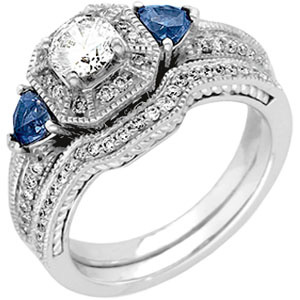 1/5 Carat Engagement Ring set with:2ea 0.310 Ct , Trillion Gemstone Sapphire16ea 0.005 Ct -- 1.00 MM, SI1-2 / H-I Round Diamond20ea 0.006 Ct -- 1.12 MM, SI1-2 / H-I Round Diamond
