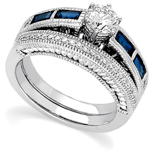 1/3 Carat TW Engagement Ring set with:2ea 0.018 Ct -- 1.50 MM, SI1 - SI2 / H -I Round Diamond4ea 0.195 Ct -- 4.00 MM, Straight Baguette Gemstone Sapphire8ea 0.037 Ct -- 3.00 MM, SI1 - SI2 / H -I Tapered Baguette Diamond