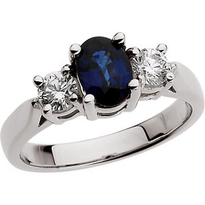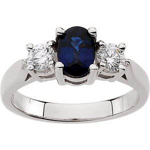 Set with: 1ea 07.00x05.00 MM AA Faceted, Genuine Blue Sapphire - Oval Faceted; AA Quality 2ea 03.80 MM (03.55 - 04.00) Full Cut, SI2-SI3 ROUND FULL CUT G-H GENUINE DIAMOND