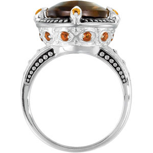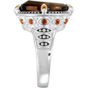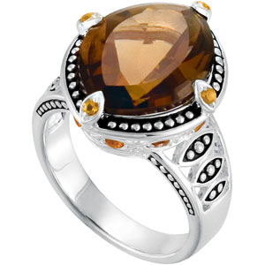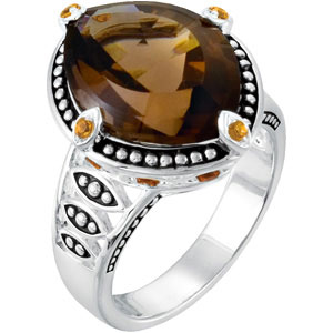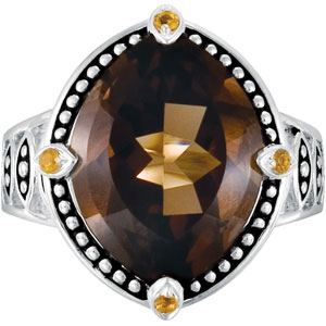 Set with:1ea 7.850 Ct -- 16X12 MM, SI1 Gemstone Smoky Quartz4ea 0.010 Ct -- 1.5X1.5 MM, SI1 Round Gemstone Citrine Brilliant10ea 0.020 Ct -- 1.75X1.75 MM, SI1 Round Gemstone Madeira Citrine Brilliant
