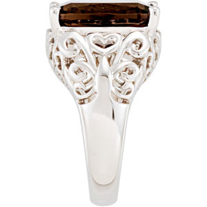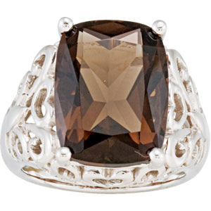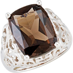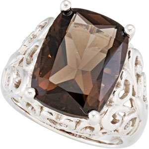 Genuine Smoky Quartz Ring. Sterling Silver. Set with 1ea 10.610 Ct -- 16x12 MM, Cushion Gemstone Smoky Quartz Cushion.