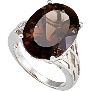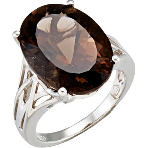 Genuine Smoky Quartz Ring. Sterling Silver. Set with 1ea 12.300 Ct -- 18x13 MM, Oval Gemstone Smoky Quartz Oval.