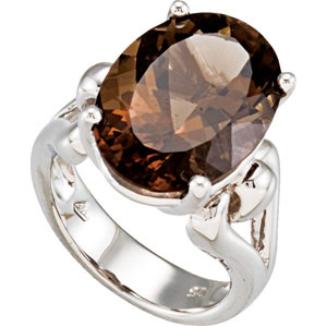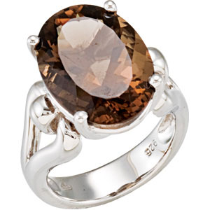 Genuine Smoky Quartz Ring. Sterling Silver. Set with 1ea 12.300 Ct -- 18x13 MM, Oval Gemstone Smoky Quartz Oval.