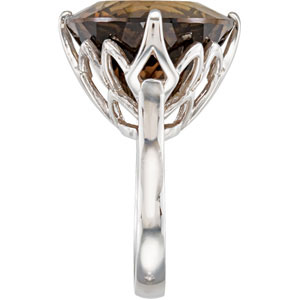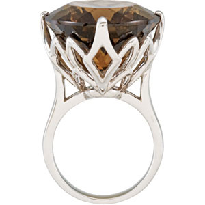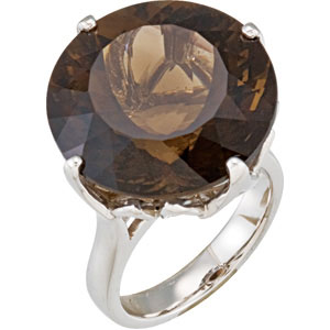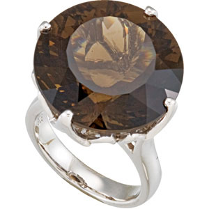 Genuine Smoky Quartz Ring. Sterling Silver. Set with 1ea 25.600 Ct -- 20x20 MM, Round Gemstone SMOKY QUARTZ.