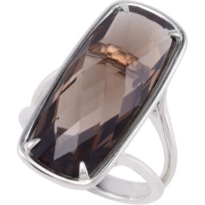 Genuine Smoky Quartz Ring. Sterling Silver. Set with 1ea 25.00x10.00 MM AA Double Sided Checkerboard, Genuine Quartz - Antique Cushion Double Sided Checkerboard; AA Quality; Smoky.