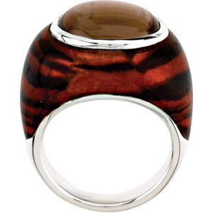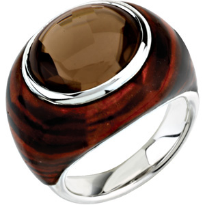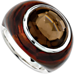 Genuine Smoky Quartz Ring with Tiger Print Enamel. Sterling Silver. Also available with Leopard Print Enamel 67467. Set with 1ea 8.400 Ct -- 14x12 MM, Oval Gemstone Smoky Quartz Oval Buff Top.